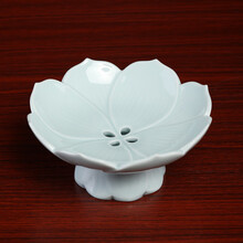 戴玉堂 陶瓷可沥水供盘高脚水果盘贡盘观音佛前家用供奉佛堂装饰摆件财神关公佛具用品大全 T93-22B 清莲滤水果盘.粉青